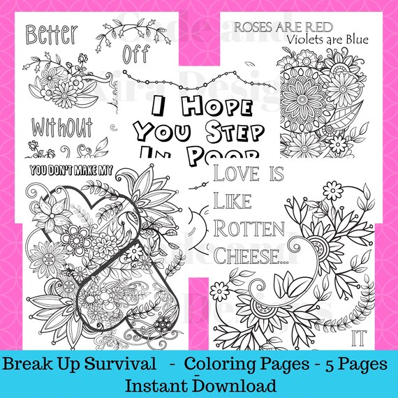 Break Up Survival Coloring Pages Funny Break Up Gift Etsy